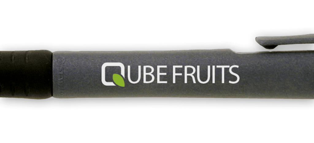 In pad printing, the motif is reproduced in a plate as a recess. The ink in the indentation is absorbed by a silicone pad and released onto the pen. Pad printing is the most important printing process for our plastic pens and is particularly suitable for fine lines. Pad printing is therefore particularly suitable for texts and logos with intricate details on pens.