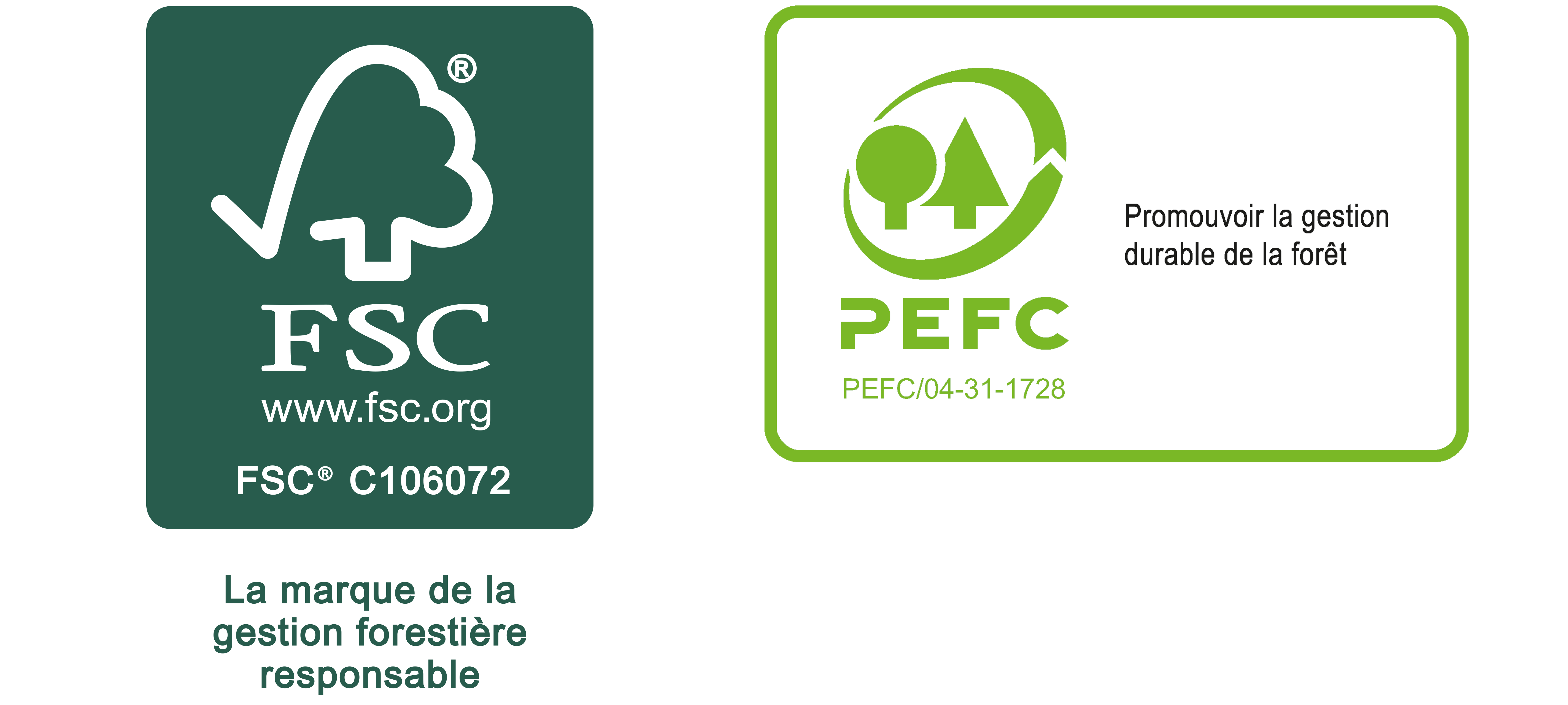 Le FSC®C106072 (Forest Stewardship Council) est une organisation non gouvernementale à but non lucratif qui s'engage à garantir une gestion responsable des forêts. Ses objectifs sont, entre autres, la préservation de précieuses forêts originelles, la protection des peuples naturels qui y vivent et, surtout, l'utilisation à long terme et écologiquement responsable de la matière première naturelle qu'est le bois.